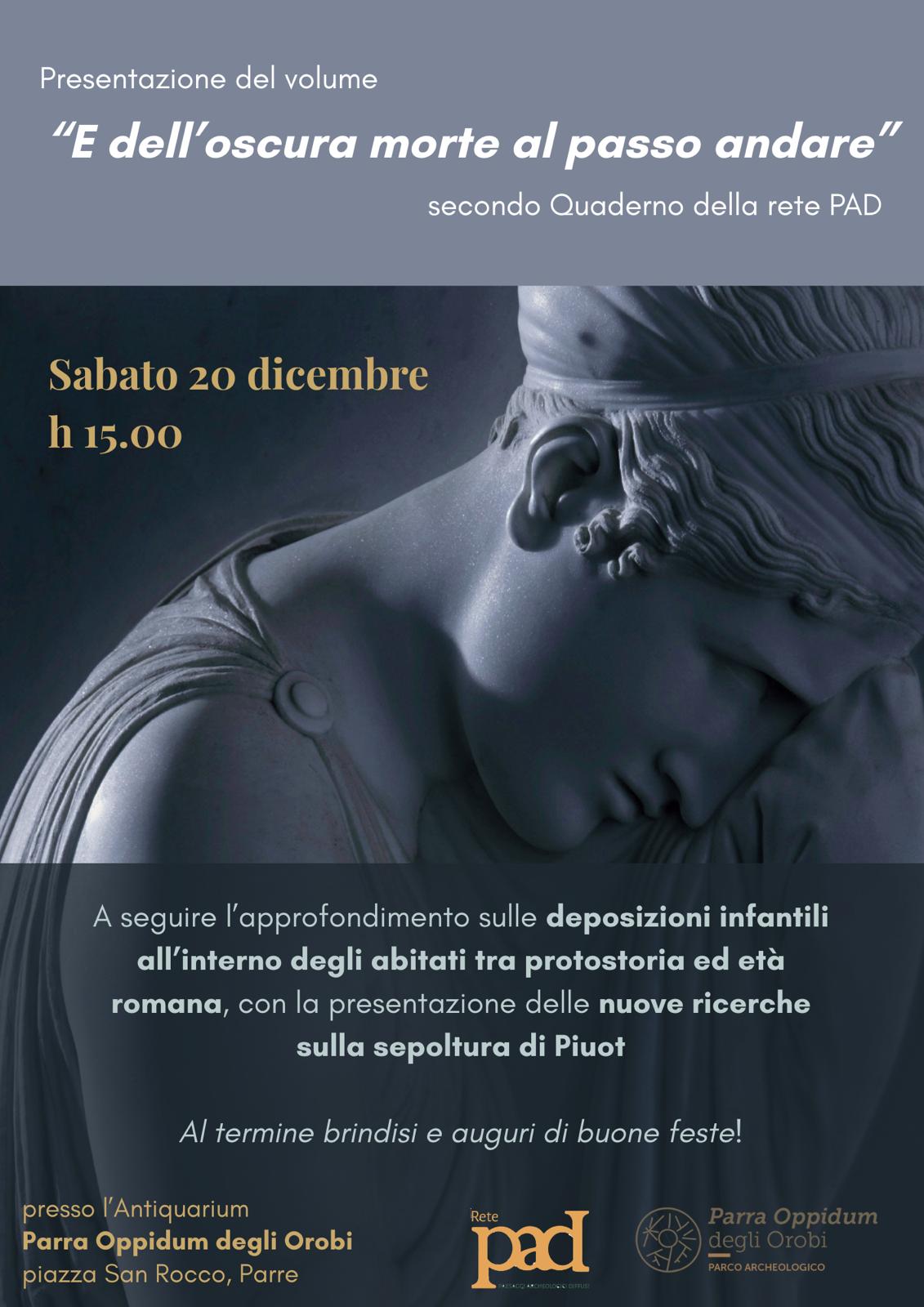 E’ con grande piacere che vi comunichiamo la presentazione a Parre, sabato 20 dicembre alle 15,00 presso l’Antiquarium i Piazza S.Rocco, del secondo volume della rete PAD (paesaggi archeologici diffusi)